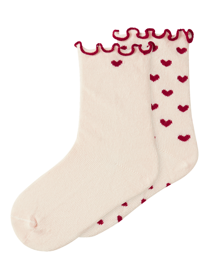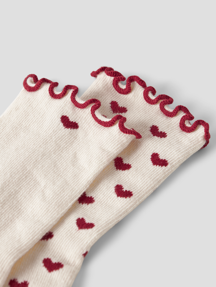 Lil' Atelier Strømpebukser Reba - Turtledove Red Hearts
