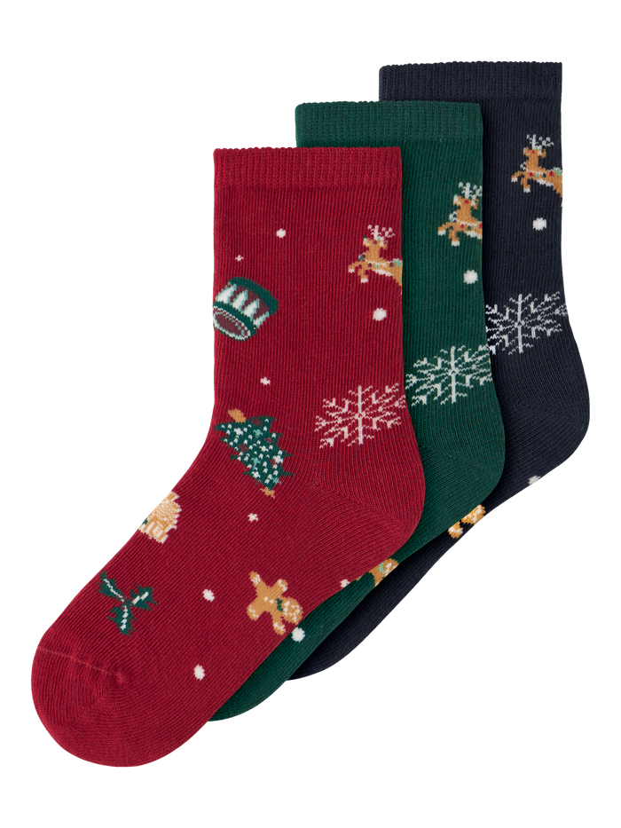 Name It Jul Strømper Vismas 3-pak - Jester Red Navy Blazer + Botanical Garden