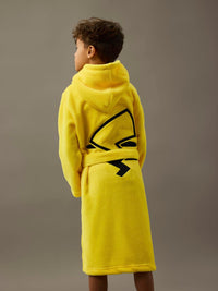 Denne badekåbe i en livlig gul farve er ideel til børn, der elsker komfort og blødhed efter badet eller i de kolde vintermåneder. Den er fremstillet i 100% polyester, hvilket sikrer et let og hurtigtørrende materiale, samtidig med at den føles blød mod huden. Badekåben har praktiske forlommer og er udsmykket med broderi, der giver et ekstra pift til det samlede udtryk.