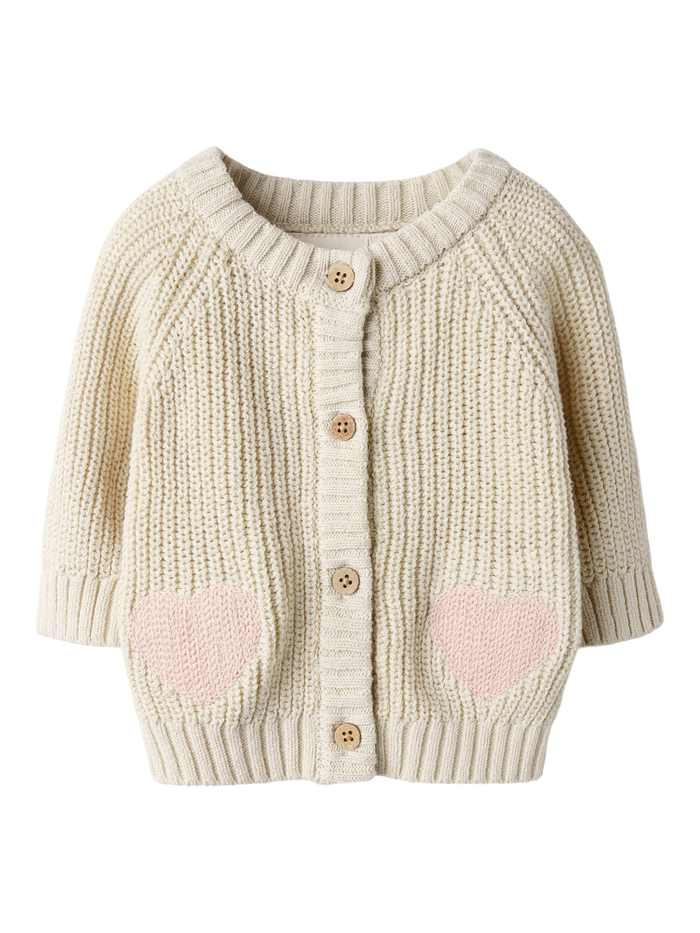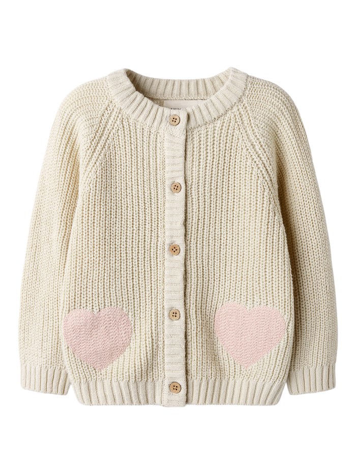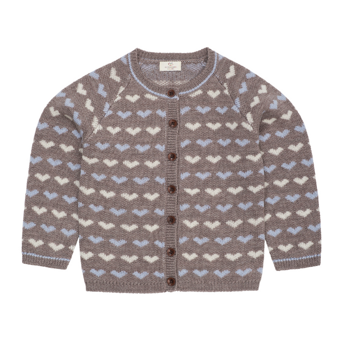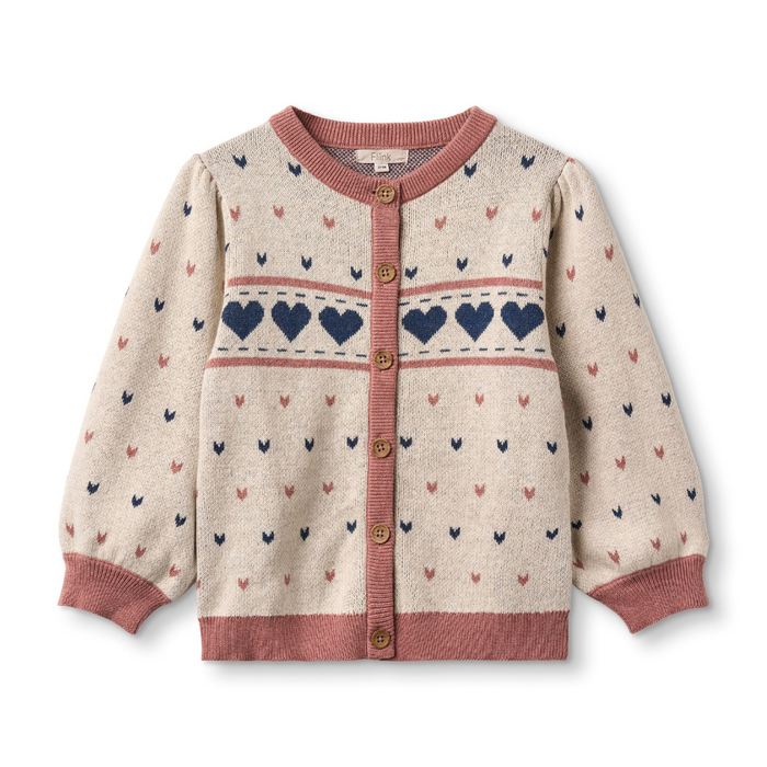 Wheat Cardgian Jacquard Heart - Offwhite Melange