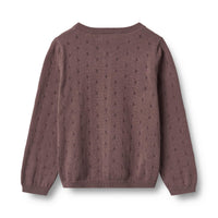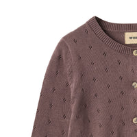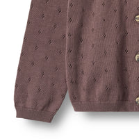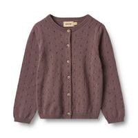 Wheat cardigan Maia med sødt pointelle hulmønster. Cardiganen er lavet i økologisk bomuld. Den har foran og blød rib i hals, i bunden samt ved manchet.