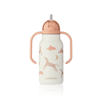 Liewood drikkedunk Kimmie er en innovativ, børnevenlig version af Falk-flasken. Med to nemme håndtag på låget og et indbygget sugerør, så den er nem at bruge for selv de mindste. Flasken er fremstillet i 18/8 rustfrit stål og med tilhørende låg, der passer til alle Falk-flasker.