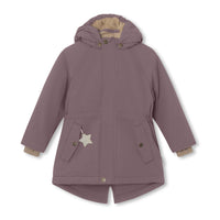 MINI A TURE klassiske vinterjakke Vikania med fleece. Vinterjakken er 100% vind- og vandtæt, åndbar, og varm nok til en meget kold vinter. Den justerbare elastik i taljen skaber en fin siluette, mens de praktiske snemanchetter med huller til tommelfingrene tilføjer ekstra varme på de kolde dage. Ærmerne har forbedret fitting, der giver større bevægelsesfrihed. Jakken har en varm, aftagelig hætte, som er foret med Sorona® Aura, et miljøvenligt alternativ til dun.
