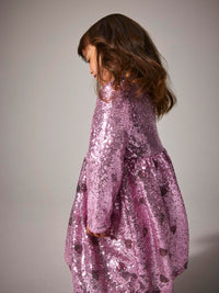 Denne kjole er fremstillet i jacquard, som giver et elegant look med sit vævede mønster. Modellen har rund halsudskæring og lange ærmer, og den lukkes med knap og løkke, hvilket sikrer en behagelig og regulær pasform. Den lyserøde nuance i farven Lilac Sachet tilføjer et blødt og feminint præg til kjolen.