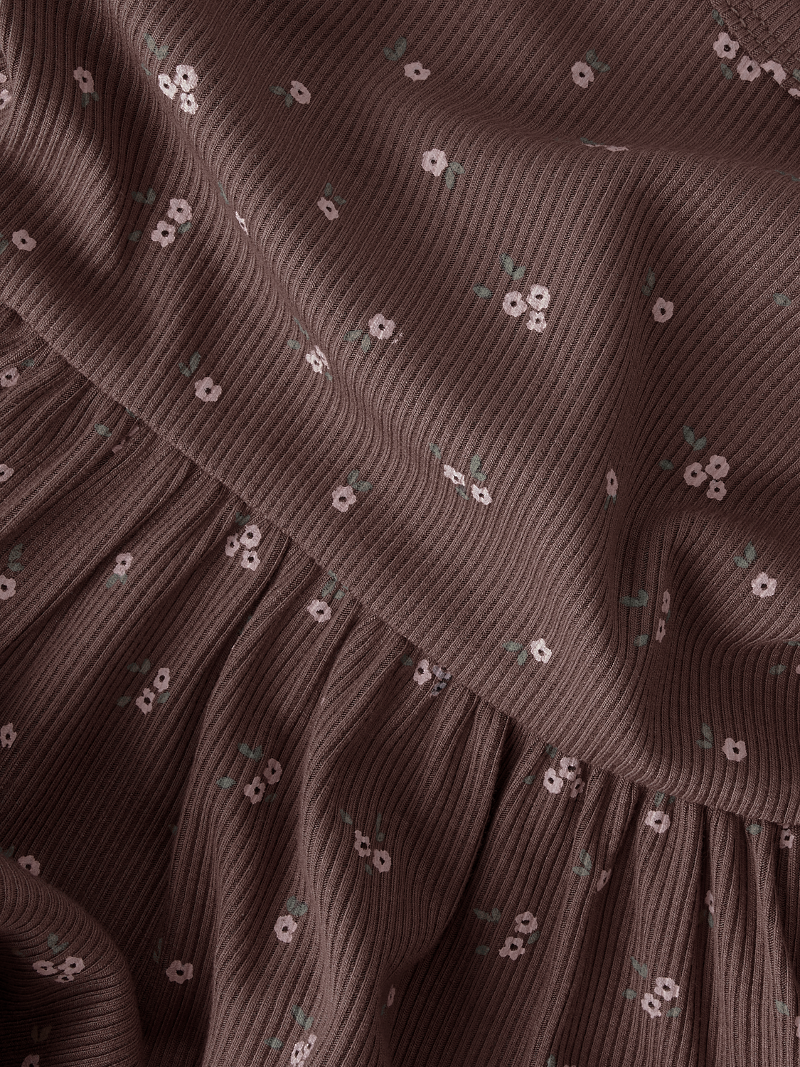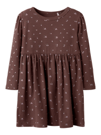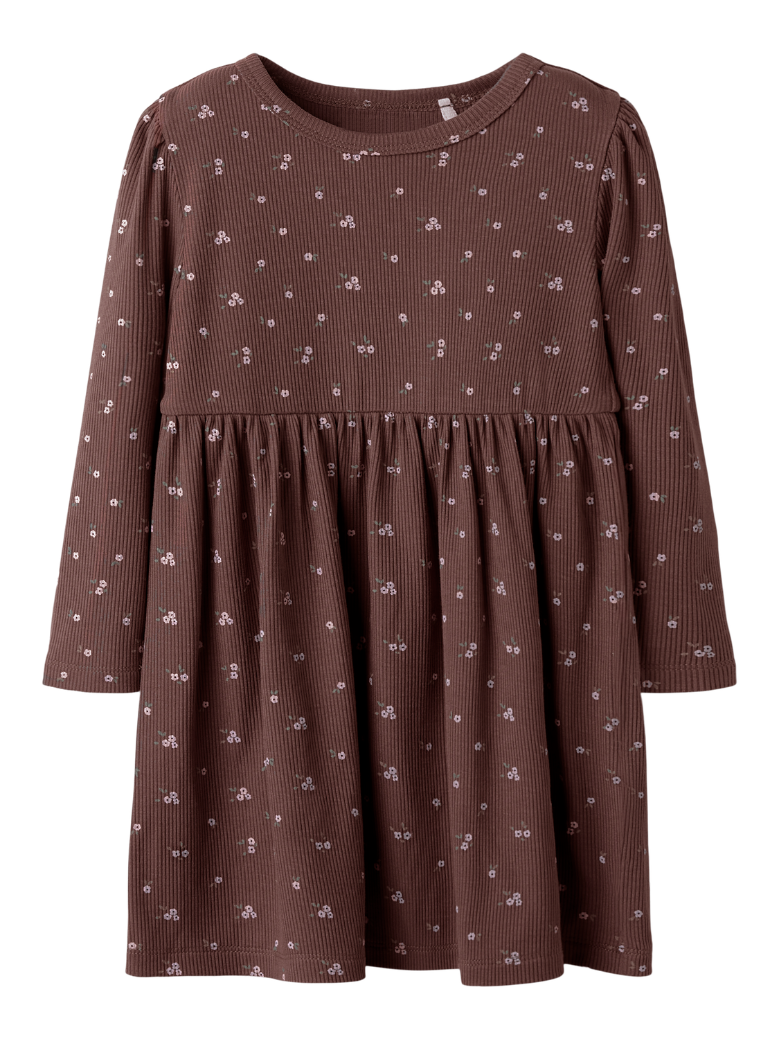 Name it kjole kombinerer blødhed og komfort med et tidløst udtryk takket være dens ribstrikkede stof, der har et lodret, stribet mønster og god elasticitet. Kjolen har en enkel rund hals og lange ærmer, hvilket gør den ideel til kølige dage. Den er designet med en regular pasform, der sikrer både bevægelsesfrihed og et klassisk look. Farven Peppercorn tilføjer et subtilt og alsidigt touch, der passer til mange anledninger.