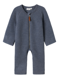 Name it ulddragt til nyfødte er lavet af 100% merinould, som er kendt for sine isolerende egenskaber, blødhed og fine struktur. Den holder barnet varmt på kølige dage og absorberer samtidig sved for at sikre en behagelig temperatur året rundt. Dragten har en praktisk lynlås og lange ærmer, og benenderne kan foldes over fødderne for ekstra varme og komfort.