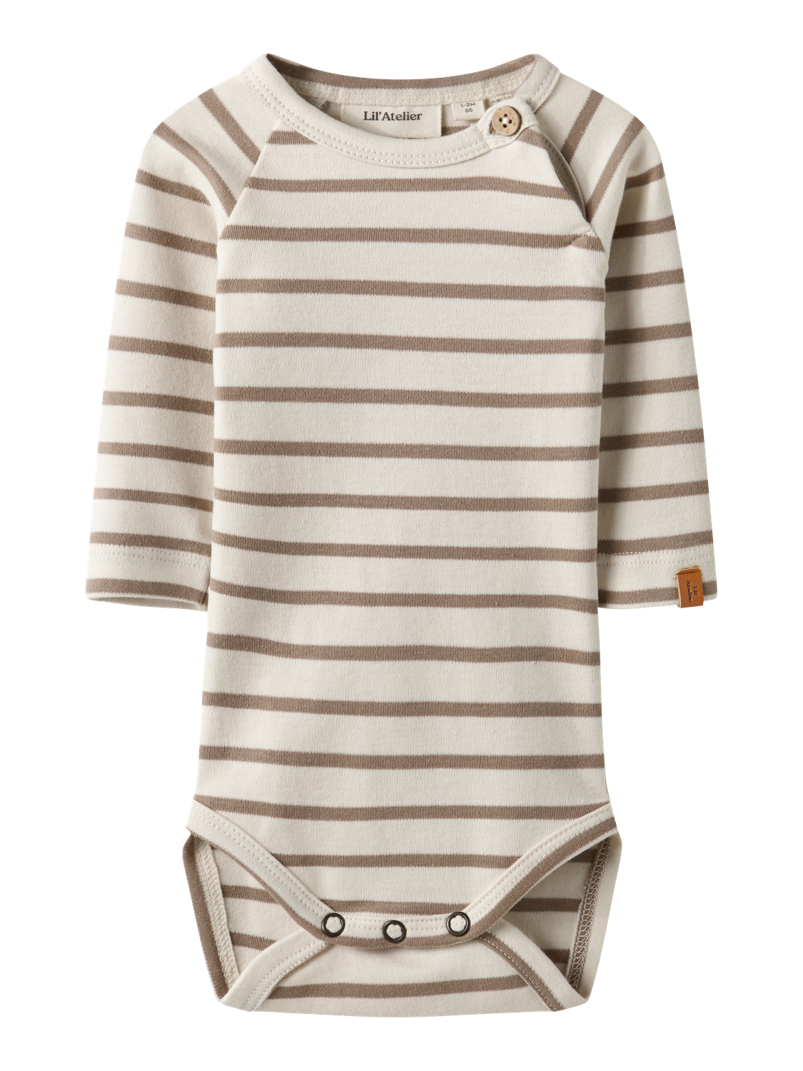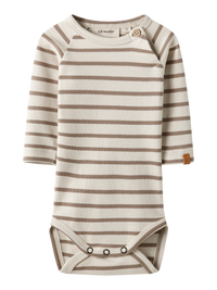 Denne body er lavet i blød og let jersey, som giver god bevægelsesfrihed og behagelig komfort til den lille. Den har en rund hals og lange ærmer, som holder barnet lun i vintermånederne. Lukningen med knapper gør den nem at tage af og på, hvilket er praktisk til hverdagens skift.