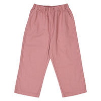 Müsli bukser blød bomulds twill. Bukserne er uden stræk og har elastik i taljen og lommer i siderne. Der er et lille opfold i bukseafslutningen.