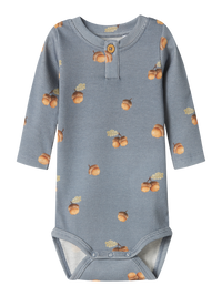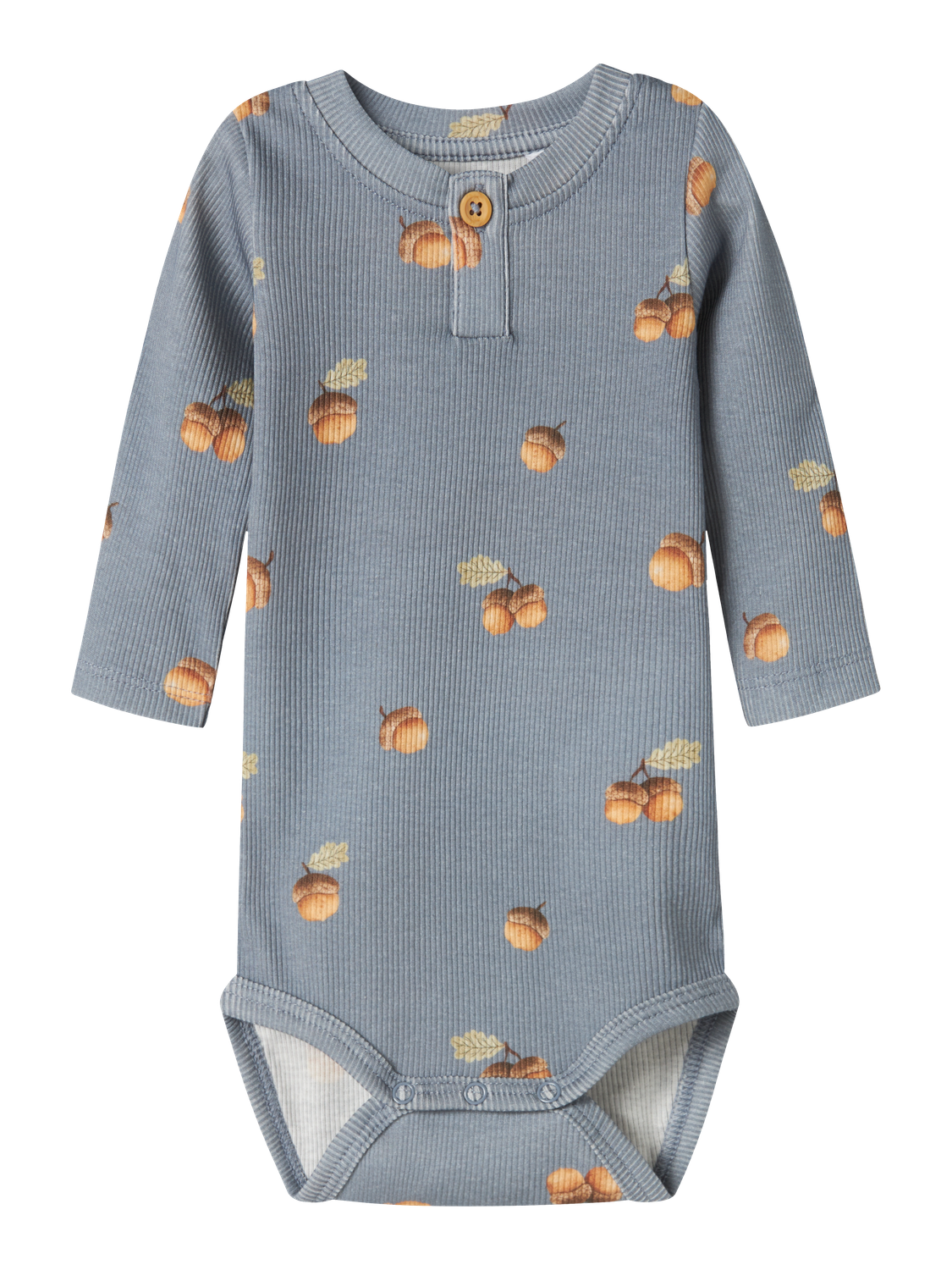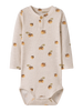 Name it bodystocking i blød ribstrik har et lodret, stribet mønster og god elasticitet, hvilket giver en behagelig pasform og et tidløst udseende. Med rund hals og lange ærmer er den ideel til babyer og praktisk året rundt. Lukningen med knapper og trykknapper sikrer nem på- og aftagning.