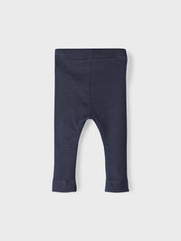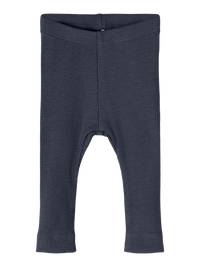 Name it basis leggings med rib. De er lavet i en lækker kvalitetblanding af økologisk bomuld og modal. Fås også i matchende body, bluse og t-shirt.
