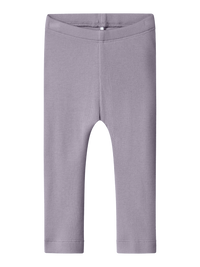 Disse leggings er lavet i en blød ribstrikket kvalitet, som både er behagelig og har en god elasticitet, hvilket sikrer en komfortabel pasform og et tidløst look. Den elastiske talje gør dem nemme at tage på og sikre en god pasform. Farven Lavender Gray giver et sart og stilfuldt udtryk til barnets garderobe.