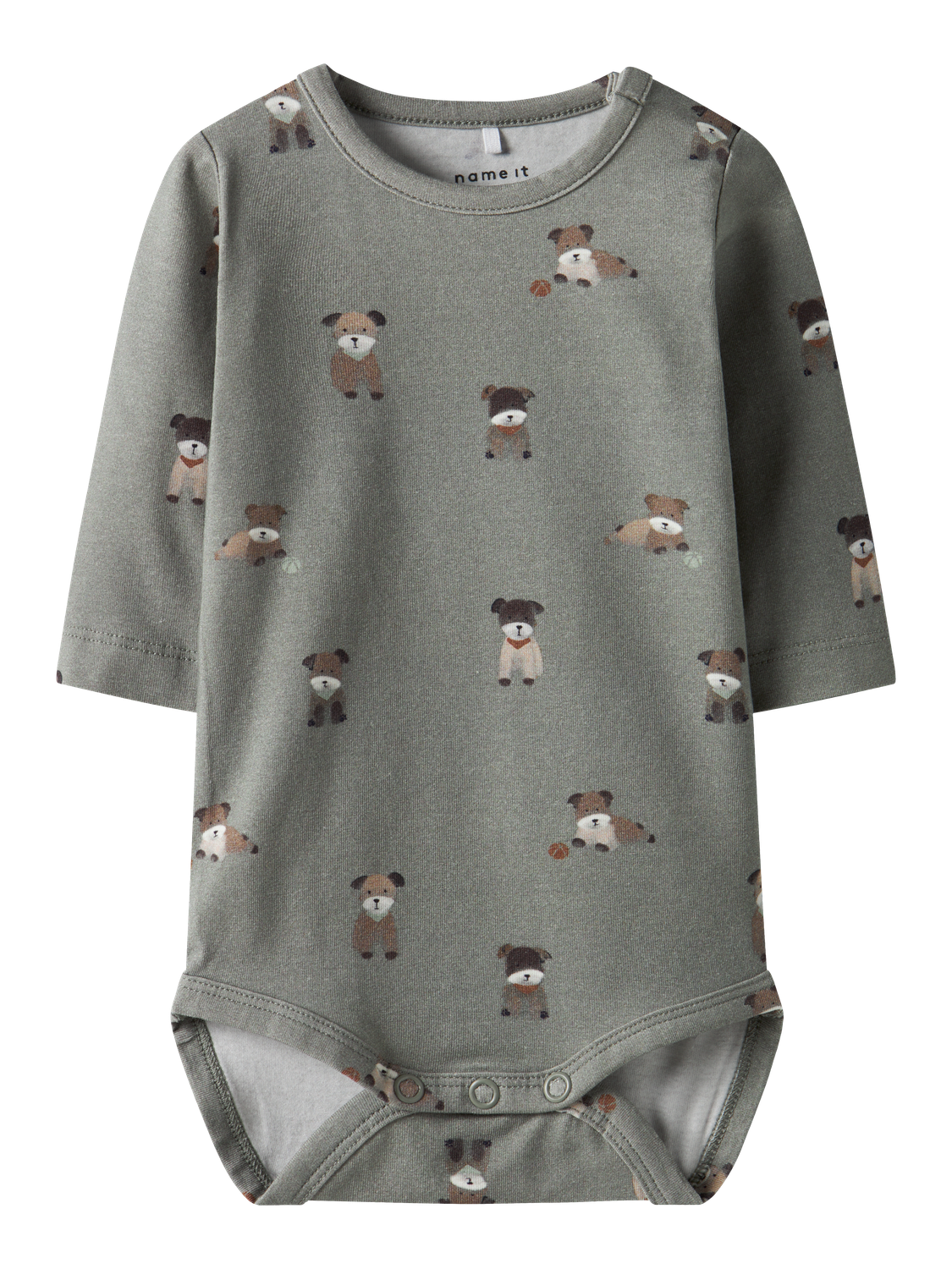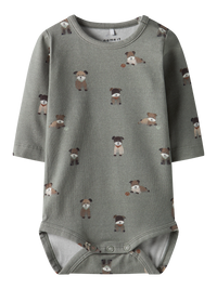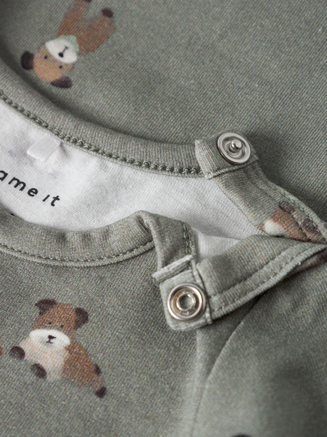 Denne body til nyfødte er lavet i blødt og strækbart jersey, som giver en behagelig overflade og god bevægelsesfrihed. Den har lange ærmer og en rund hals, der sikrer komfort hele dagen. Praktiske trykknapper ved skridtet og skulderen gør det nemt at tage bodien af og på. Desuden har den et flot, ensartet print over hele stoffet.