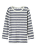 Denne langærmede trøje i 100% merinould er skabt med en unik drop-needle teknik, der giver tøjet et særligt mønster og et charmerende udtryk. Den har en rund halsudskæring og en regular fit, som sikrer god komfort og bevægelsesfrihed. Farven, Folkstone Gray, er en afdæmpet grå nuance med striber, der passer godt til forskellige sommeroutfits.