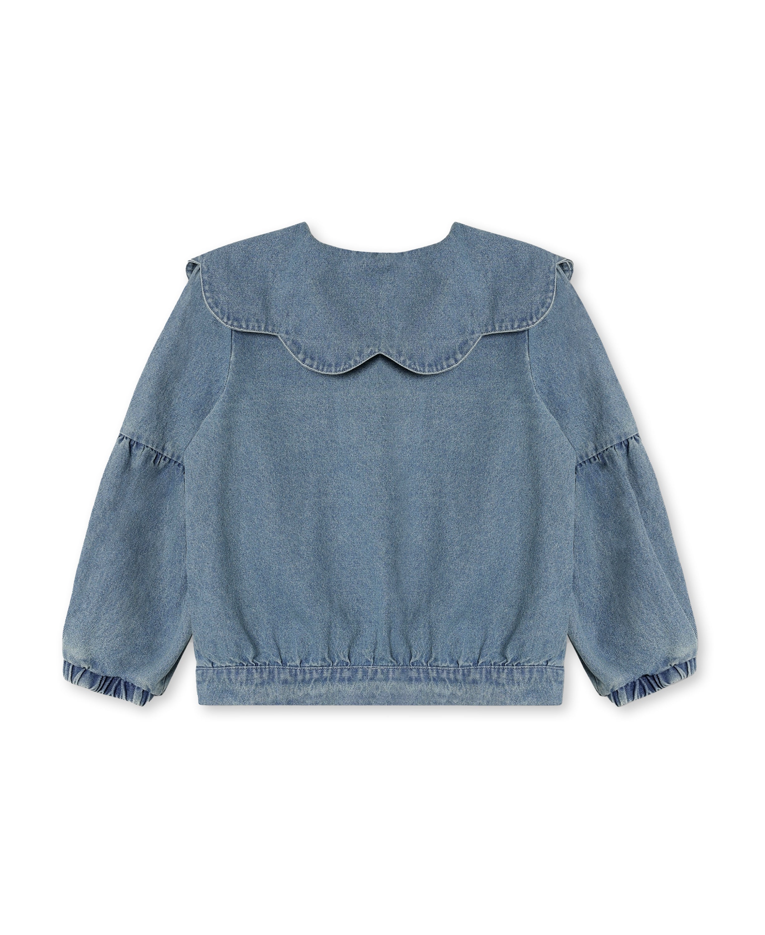 Fliink bomberjacket i medium denim blå er en alsidig jakke skabt til forårs- og sommer. Jakken er designet med langærmede ærmer og har fine broderede detaljer, der giver et unikt og stilfuldt udtryk. Det lette materiale i 100% bomuld sikrer komfort og åndbarhed, hvilket gør jakken ideel til de mildere måneder.