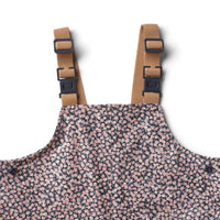 Wheat regnbukser Charlo er lavet i et superblødt og let materiale, der gør det behageligt for dit barn at have på og bevæge sig rundt i. Det er vandtæt og smudsafvisende, og er derfor nemt at rengøre med en våd klud efter en mudret eftermiddag på legepladsen. Bukserne har elastikker i benene samt justerbare elastiske seler for at sikre, at de bliver holdt på plads.