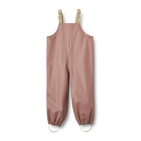 Wheat regnbukser Charlo er lavet i et superblødt og let materiale, der gør det behageligt for dit barn at have på og bevæge sig rundt i. Det er vandtæt og smudsafvisende, og er derfor nemt at rengøre med en våd klud efter en mudret eftermiddag på legepladsen. Bukserne har elastikker i benene samt justerbare elastiske seler for at sikre, at de bliver holdt på plads.