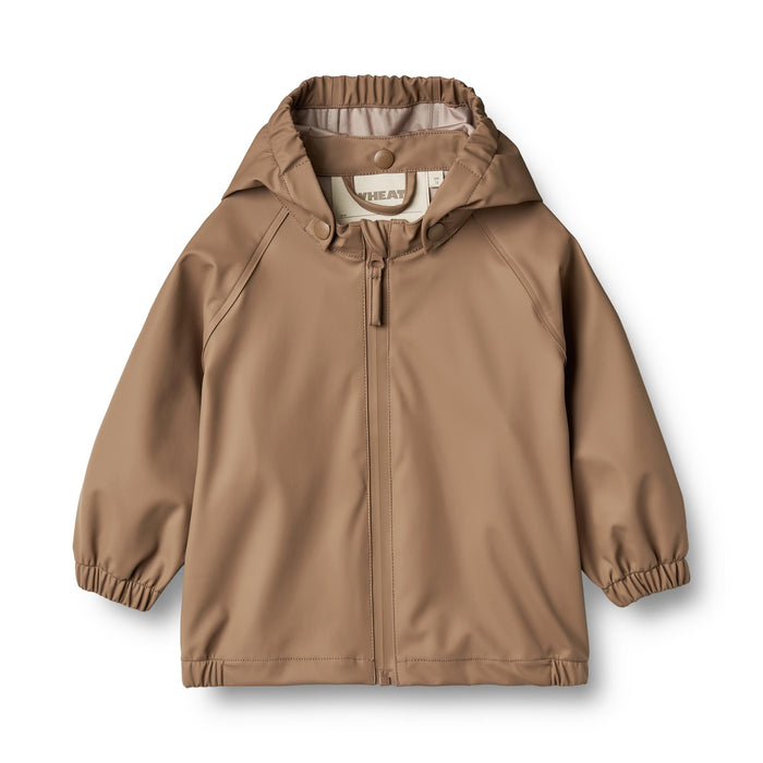 Når det danske vejr viser sig fra sin mere våde side, skal der lidt ekstra til, når din baby skal udendørs, men ved at klæde dit barn i det rigtige regntøj, få masser af sjov ud af regnvejrsdage sammen. Til de helt yngste har vi et udvalg af regndragter. De er behagelige, og så er de også nemme at få af og på. Vi har blandt andet et udvalg af regndragter fra Wheat, som er certificeret Standard 100 fra OEKO-TEX®. Vores regndragter fra Wheat er vandtætte, med vandtæt lynlås, og kommer med en aftagelig hætte. Derudover er den også smudsafvisende. Regndragterne kan vaskes skånsomt ved 40 grader, men kan også nemt rengøres med en våd klud.