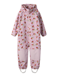 Denne softshelldragt er let og ideel til overgangsperioder mellem sæsonerne med sin vind- og vandtætte funktionalitet. Den er lavet af et blødt, åndbart og slidstærkt materiale, der gør den perfekt til udendørs leg, selv på grå, blæsende og lettere regnvejrsdage. Dragten har lange ærmer med elastiske manchetter og lynlås lukning, der sikrer en tæt og behagelig pasform. Den aftagelige hætte øger sikkerheden, samtidig med at dekorative reflekterende detaljer bidrager til synlighed. Elastiske benafslutninger og justerbare fodstropper af holdbart gummi sørger for, at dragten sidder godt omkring fødderne. Indvendigt er den foret med fleece, som giver varme og en blød følelse, mens en let isolering sikrer komfort på køligere dage.