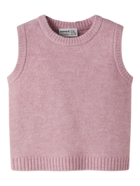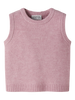 Name it strikkede slipover har en rund hals og er uden ærmer, designet til at give varme og komfort i vintermånederne. Med en ribdetalje ved kanten tilfører den et fint finish og en behagelig pasform i regular fit. Farven Keepsake lilac giver et blødt og stilfuldt udtryk, perfekt til små børn.