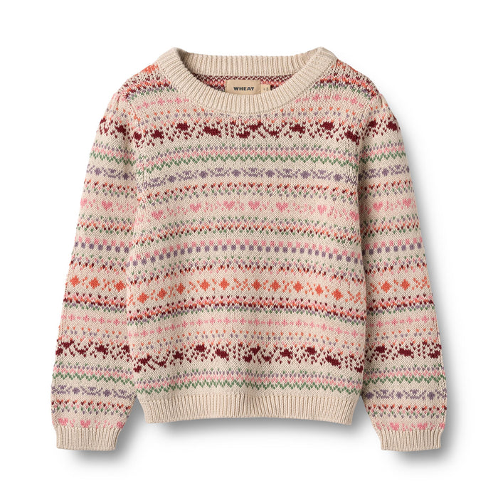Wheat Cardgian Jacquard Heart - Offwhite Melange