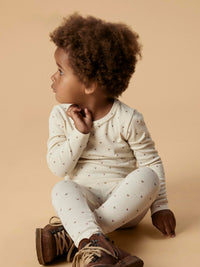 Disse slim leggings til børn er lavet i en blød og let jersey, der kombinerer økologisk bomuld med LENZING™ TENCEL™ Lyocell og elastan, hvilket sikrer både komfort og bevægelsesfrihed. Leggings har en elastisk talje og fine flæsedetaljer, hvilket giver et sødt og behageligt design. Stoffet har et ensartet print over hele overfladen, perfekt til vinterbrug.