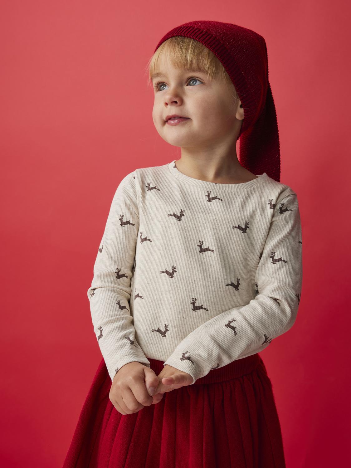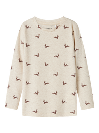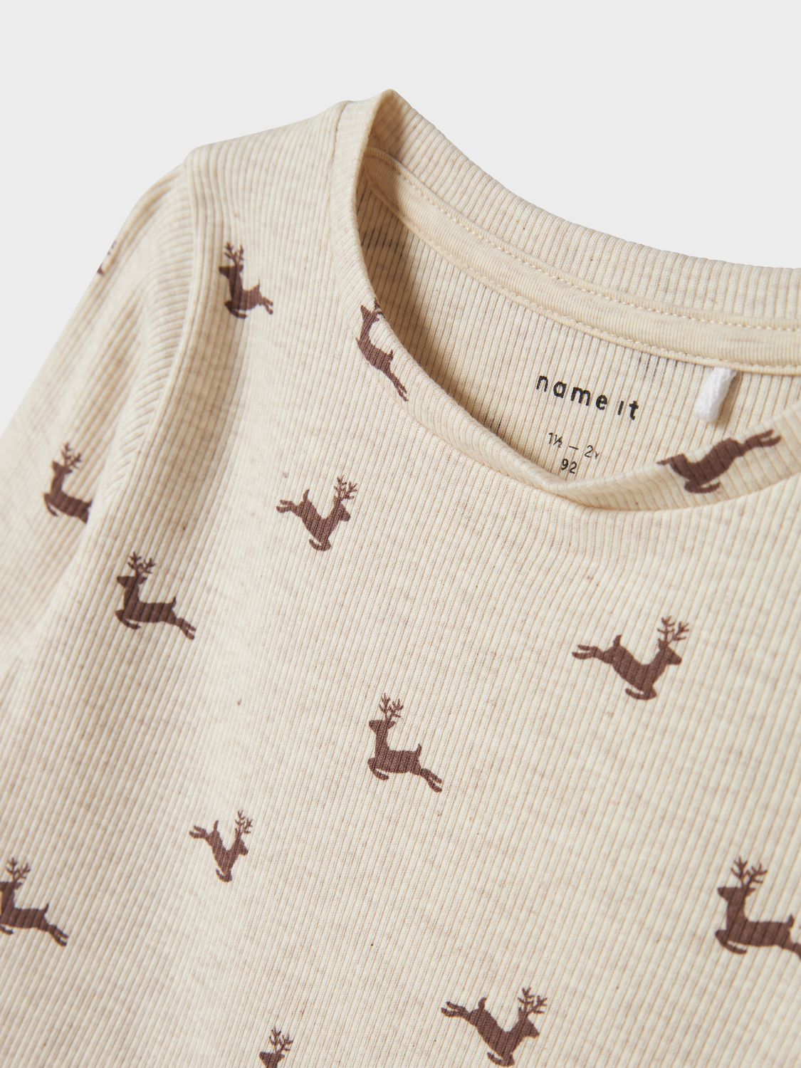 Name it langærmede top har en rund halsudskæring og en slank pasform, som sikrer en behagelig og moderne stil. Stoffet er ribstrikket med en lodret, stribet struktur, der giver både god elasticitet og et tidløst look. Toppen er fremstillet med fokus på bæredygtighed, idet den indeholder 57% økologisk bomuld, som dyrkes uden skadelige kemikalier for at beskytte naturressourcer og biodiversitet. Farven Peyote melange giver et afdæmpet og alsidigt udtryk, som passer til mange anledninger.