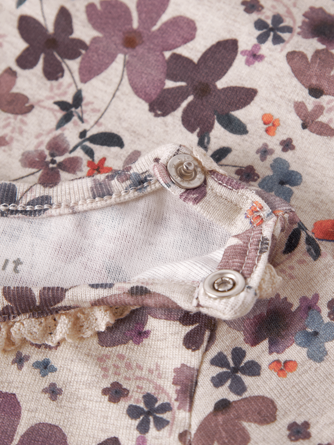 Name it body med en rund hals og lukkes med praktiske trykknapper, som gør påklædningen nem og bekvem. Stoffet kombinerer økologisk bomuld med TENCEL™ Lyocell og en smule elastan, hvilket sikrer en blød og strækbar kvalitet, der føles behagelig mod huden. Den fine stribede struktur giver et tidløst udtryk, perfekt til den lille ny throughout hele året.