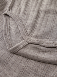 Denne bodystocking er lavet i blød merinould, der sikrer varme og komfort til de mindste. Den har lange ærmer og en rund hals, der giver en behagelig pasform. Det unikke nålefaldsmønster, kendetegnet ved faldne masker, skaber et charmerende og særligt look. Den lukkes med trykknapper i skridtet for nem påklædning.