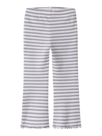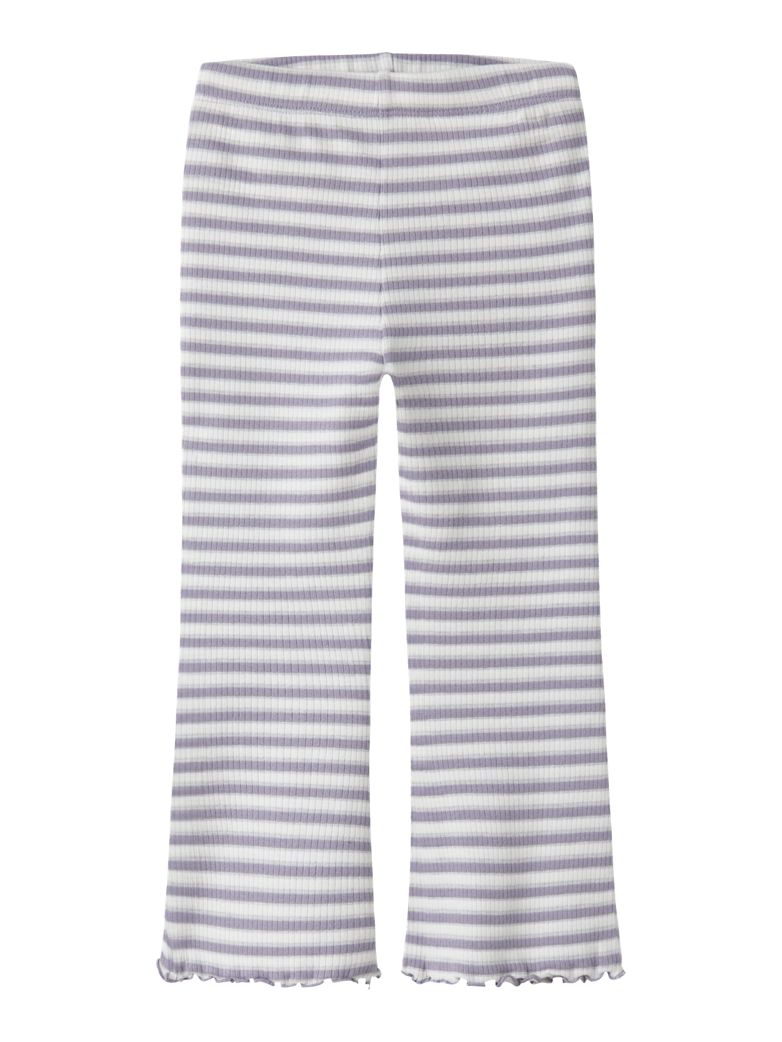 Disse flare bukser til børn har en bootcut pasform og er lavet i et ribstrikket materiale med et vertikalt, stribet mønster, som kombinerer god elasticitet med en blød og behagelig følelse. Bukserne har en elastisk talje, som sikrer en god pasform og komfort hele dagen.