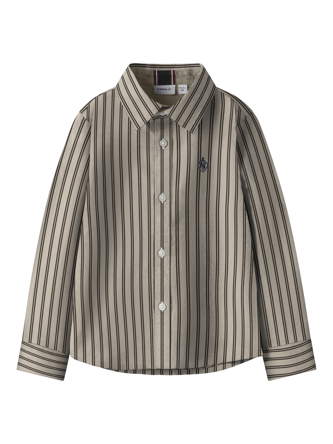 Name it langærmede skjorte til børn har en klassisk skjortekrave og knapmanchetter, der giver et tidløst look. Det vævede stof har et tydeligt krydsmønster og en let tekstureret overflade, som skaber et rent og stilfuldt udtryk. Skjorten er designet med broderi som en fin detalje og en regelmæssig pasform, der sikrer komfort og bevægelsesfrihed for dit barn.