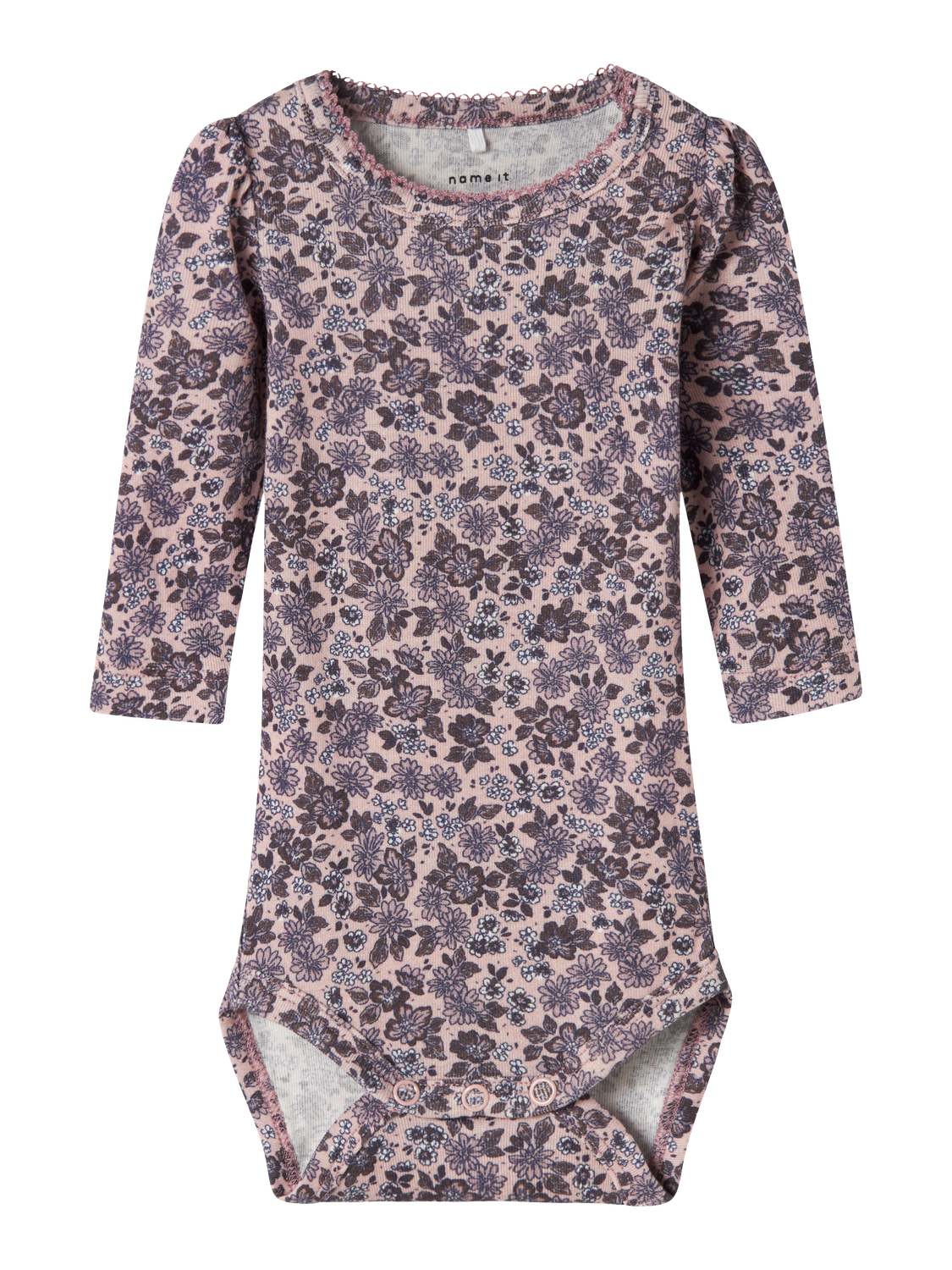Name it body i blød ribstrik er perfekt til den nyfødte og kombinerer komfort med funktionalitet. Den har en rund hals og lange pufærmer, som giver ekstra bevægelsesfrihed og en sød detalje. Lukningen med trykknapper gør det nemt at klæde barnet på og af. Den delikate broderi tilfører et fint og diskret præg til designet. Det stribede mønster i stoffet giver en tidløs og behagelig pasform, der er ideel til hverdagsbrug året rundt.