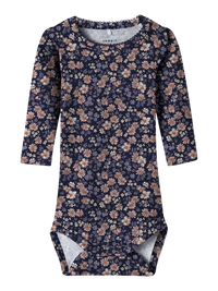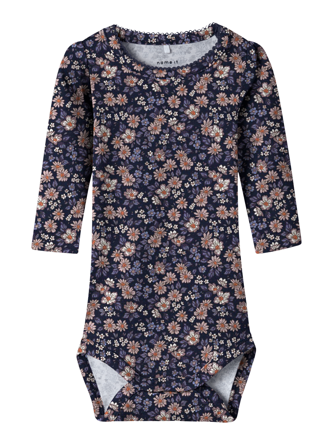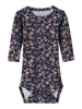 Name it body med et ribstrikket mønster og en behagelig pasform samt et tidløst udseende. Den har rund hals og lange puffærmer, der tilføjer et delikat og legeret touch. Lukningen foregår med trykknapper, hvilket gør den nem at tage af og på. Desuden er bodyen dekoreret med broderi for et ekstra pift. Den flotte navy blazer farve gør den anvendelig til mange lejligheder i efteråret.