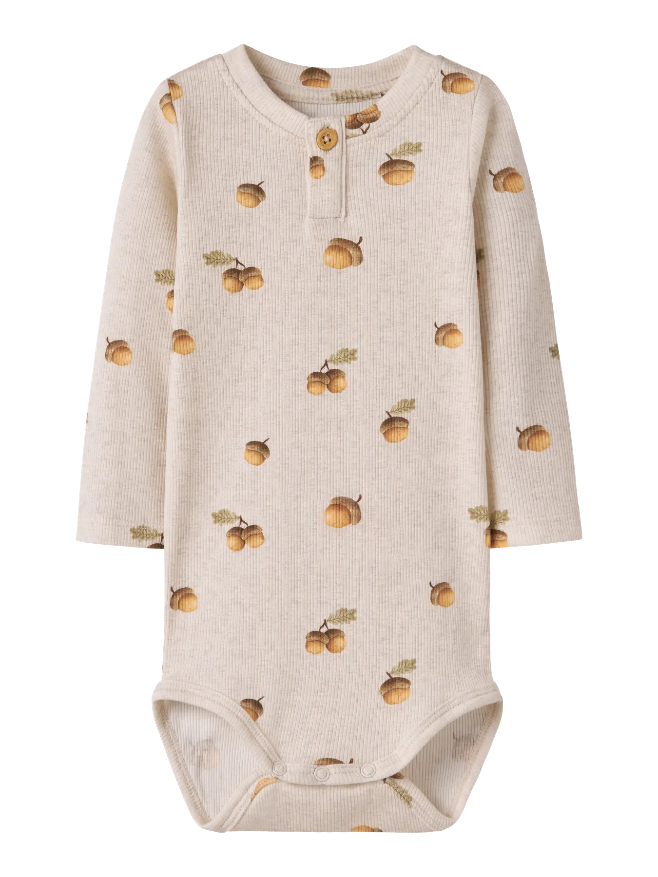 Name it body i ribstrik har et fint, lodret stribet mønster og god strækbarhed, hvilket giver en behagelig pasform og et tidløst udseende til din baby. Den har rund hals og lange ærmer samt praktiske knaplukninger for nem på- og afklædning. Bodyen er fremstillet med fokus på bæredygtighed og komfort, idet den indeholder økologisk bomuld, der dyrkes uden skadelige kemikalier.