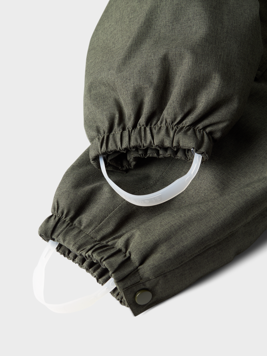 Name it flyverdragt er designet til at holde børn varme og komfortable på kolde, blæsende og regnfulde dage. Det funktionelle ydermateriale er slidstærkt, vandtæt, åndbart og vindtæt, hvilket gør den perfekt til udendørs leg. Dragten har lange ærmer med elastiske manchetter og en praktisk lynlåslukning. Den er udstyret med dekorative reflekser for øget synlighed samt en aftagelig hætte og aftagelig syntetisk pelsdetalje, der både sikrer komfort og sikkerhed.