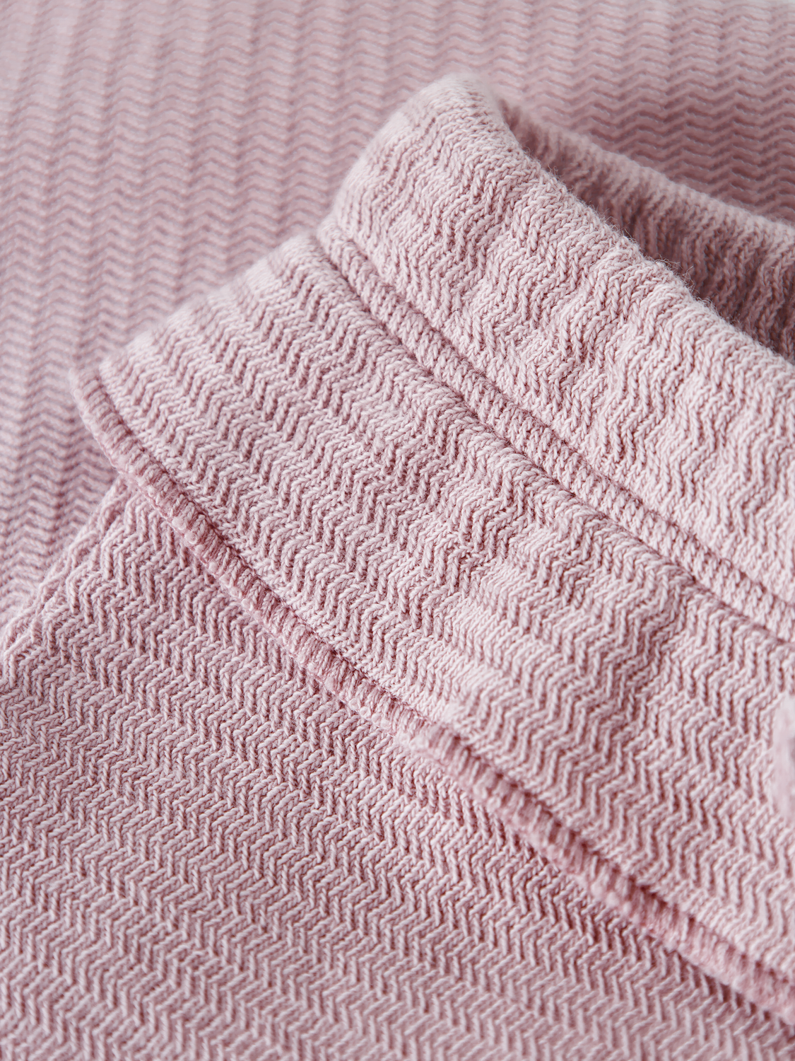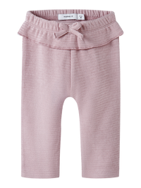 Name it leggings har en elastisk talje og en fin sløjfedetalje, som giver et sødt og behageligt udtryk. Fremstillet i 100% økologisk bomuld, der sikrer blødhed mod huden og samtidig tager hensyn til miljøet. Den jacquardvævede struktur tilfører et elegant look med et diskret mønster, der er både stilfuldt og komfortabelt. Regular fit sikrer god bevægelsesfrihed, hvilket gør leggings perfekte til hverdagsbrug for de mindste.