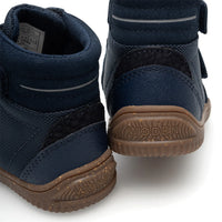 Woden Tristan Boot er den optimale begynder babysko. Den er fremstillet af læder, er foret med genanvendte materialer, har refleks detaljer og velcrostropper, som gør den let at få af og på. I indersålen finder du et blødt underlag i skummaterialet EVA, som er både let og stødabsorberende. Indersålen er beklædt med det karakteristiske WODEN kork, som sikrer åndbarhed. Vores børnestyles er altid udstyret med et voksetillæg på indersålen, så du kan være sikker på dit barns korrekte størrelse.