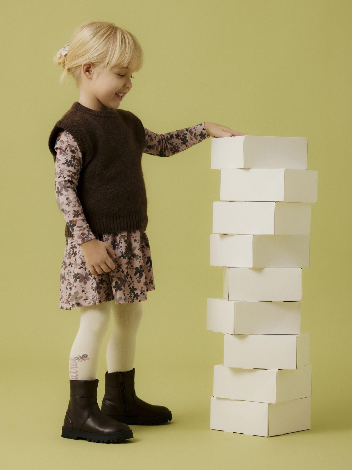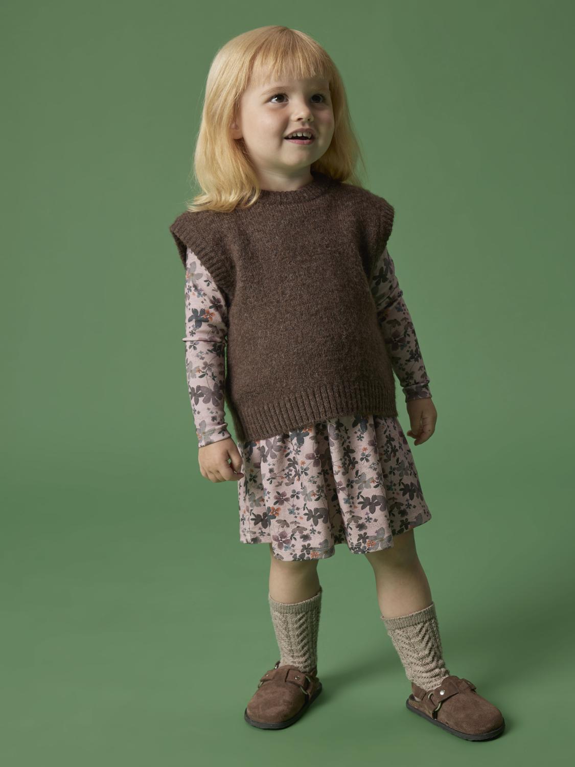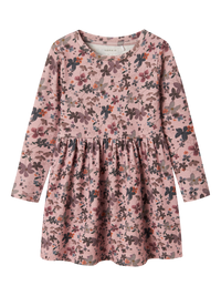The Name it dress is a comfortable and stylish dress with a round neck and long sleeves, made from a soft and sustainable blend of organic cotton, TENCEL™ Lyocell and elastane. The dress has a regular fit, which ensures comfort and freedom of movement, perfect for little girls. The color called Burnished Lilac gives the dress a warm and subdued purple hue, which fits well with the autumn mood.