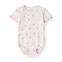 Greta bodystocking er lavet af blødt og økologisk bomuld, som sikrer god komfort for barnet hele dagen. Denne bodystocking i den fine farve Blooming Love passer perfekt til piger og byder på en blid og naturlig følelse mod huden.
