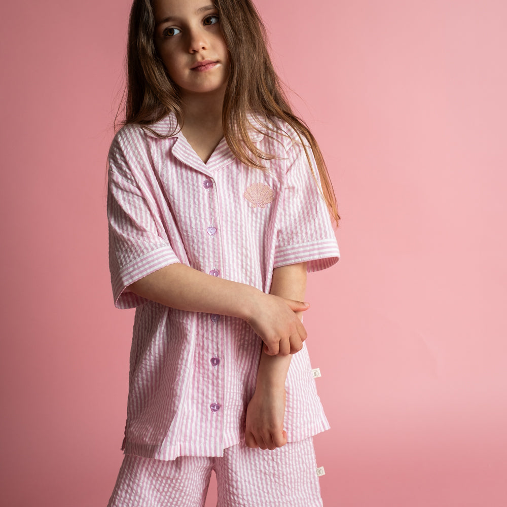 Isa shorts i en blød og behagelig kvalitet, som er fremstillet i 100% økologisk bomuld. Den fine pink stribede farve giver et friskt og sommerligt udtryk, der passer perfekt til leg og hverdag for både piger og drenge.