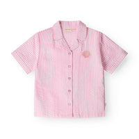 That's Mine Ino skjorte i pink strib er lavet af 100% økologisk bomuld, hvilket sikrer et blødt og behageligt materiale, der er ideelt til dagligt brug. Den har et broderet mønster, der tilføjer et fint og detaljeret touch til designet.