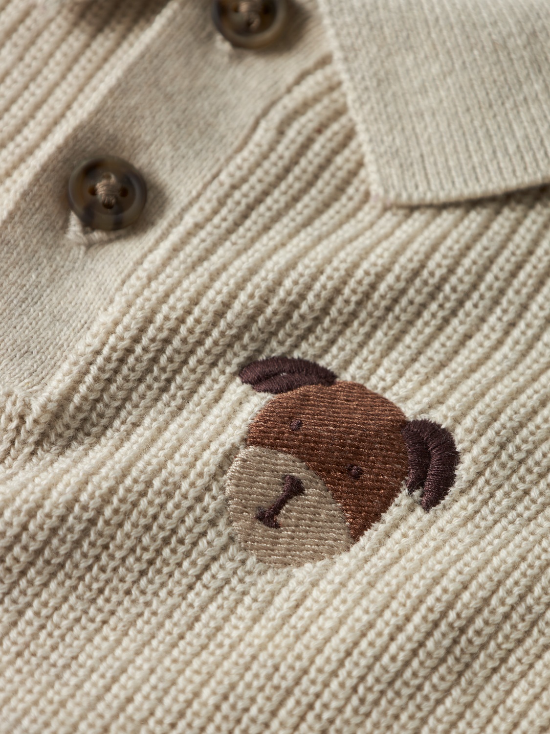 Denne bløde strikkede cardigan til de mindste kombinerer komfort med et trendy udseende takket være den fascinerende strukturstrik, der giver en fin 3D-effekt. Cardiganen har en klassisk polokrave og lukkes med knapper, hvilket gør den praktisk at tage af og på. De ribbede manchetter og afslutningen på ærmerne sikrer en god pasform og komfort hele dagen. Med sin regelmæssige pasform er den ideel som en del af en hverdagsgarderobe til de nyfødte.