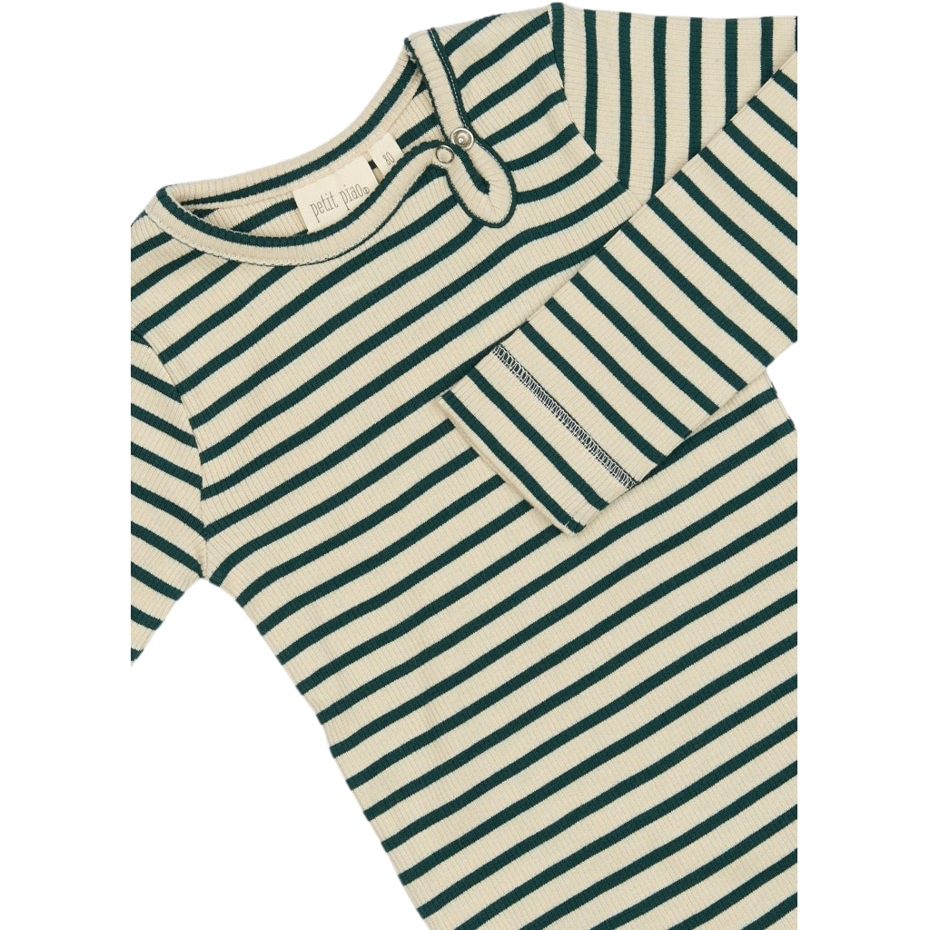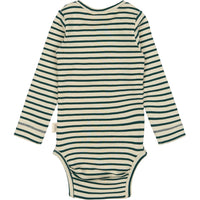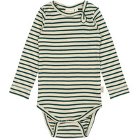 En blød og behagelig bodystocking med lange ærmer i en ribstrikket, stribet kvalitet. Den kombinerer økologisk bomuld og modal, hvilket sikrer en let, åndbar og elastisk pasform, der føles godt mod huden hele dagen. Bogstaver og mærker er holdt diskret, så fokus bevares på det enkle og stilrene design.