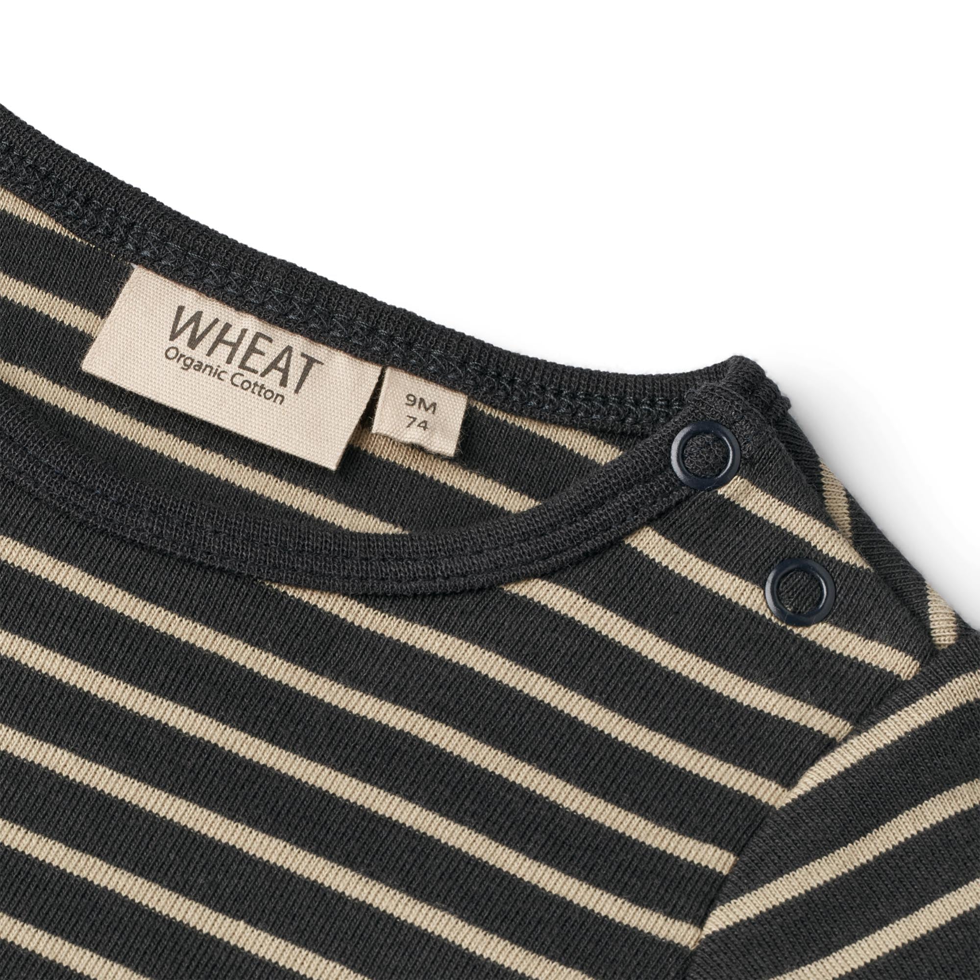 Wheat body i blød og lækker økologisk bomuld. Denne body har trykknapper på den ene skulder samt i bunden for bedre komfort, når du skal klæde dit barn på.