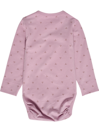 Denne body i mauve shadow er fremstillet i et blødt og behageligt materiale, der kombinerer 95% økologisk bomuld med 5% elastan, hvilket sikrer en god pasform og bevægelsesfrihed til børn. Den har lange ærmer og et flot all-over print, der egner sig perfekt til forår og sommer. Bodyen er strikket og produceret i Indien, hvilket bidrager til dens kvalitet og holdbarhed.