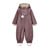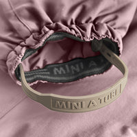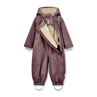 MINI A TURE klassiske flyverdragt Wisti med fleece. Flyverdragten er 100% vind- og vandtæt, åndbar, og varm nok til en meget kold vinter. Hætten der kan tages af ved hjælp af en skjult lynlås. Taljen kan justeres indvendigt, og snefangene ved håndleddene har plads til tommelfingrene. Ærmerne har spænder på til påsættelse af MINI A TUREs luffer. I lommen foran findes den klassiske MINI A TURE refleks.