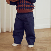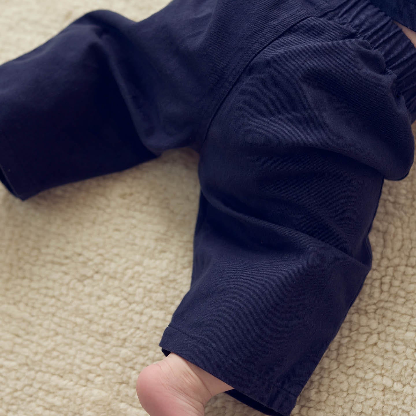 Müsli bukser blød bomulds twill. Bukserne er uden stræk og har elastik i taljen og lommer i siderne. Der er et lille opfold i bukseafslutningen.