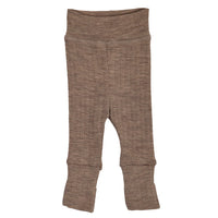 Bløde Müsli bukser til de mindste. Bukserne har en bred og elastisk kant foroven som kan foldes efter behov og stil. I ben-afslutningen er der foldbare fødder, så du kan folde bukserne så de små fødder ikke bliver kolde. Bukserne er lavet fra str. 44-74 så de passer meget små børn. Fremstillet i dejlig blød merinould-rib som ikke kradser. Uld er varmeregulerende og har den evne at den holder tør og varm da uld transporterer sved væk fra kroppen.