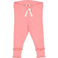 Müsli leggings med rib og søde detaljer. De er søde og feminine, og er i en fantastisk blød og strækbar kvalitet, der gør pasformen rigtig god. De er gode lange og har elastik i taljen.