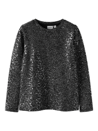 Denne Sura LS top til børn har en rund hals og lange ærmer, der giver en behagelig pasform hele dagen. Den skinnende glitter og pailletdetaljer tilføjer et festligt og glamourøst udtryk, perfekt til særlige lejligheder eller festlige begivenheder året rundt. Stoffet består af en blød blanding, der kombinerer polyester med en smule elastan for bevægelsesfrihed og komfort.