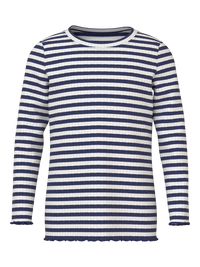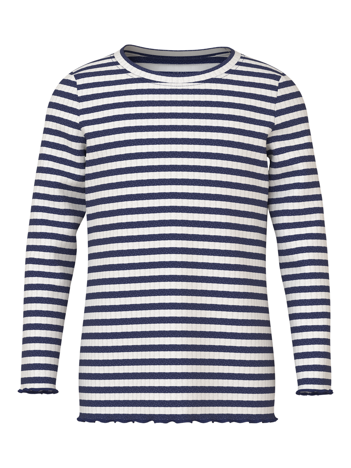 Name it bluse med rund hals og lange ærmer, perfekt til hverdagsbrug og særlige lejligheder. Det lette og elastiske jersey-stof sikrer komfort og god bevægelsesfrihed, mens glimmerdetaljen giver et festligt og stilfuldt touch. Den fine stribede overflade tilføjer et diskret mønster, som passer godt til mange outfits.